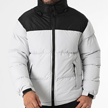 Doudoune Capuche Gris Clair Noir