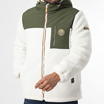 Veste Sherpa Capuche Zippée Terpa Beige Vert Kaki