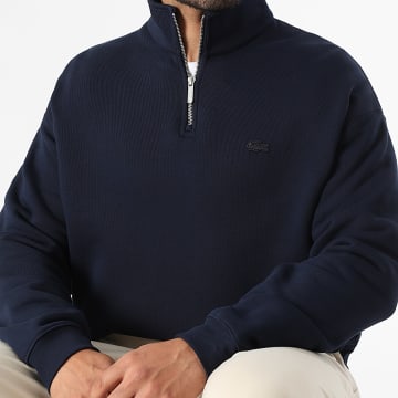 Sweat Col Zippé Loose Fit Logo Brodé Crocodile Ton Sur Ton Bleu Marine