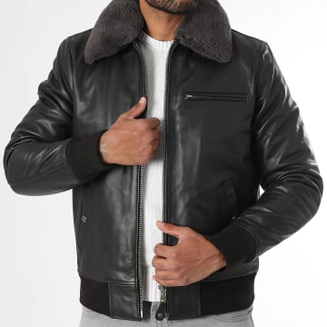 Veste Cuir Véritable Col Mouton LC1380 Marron Foncé